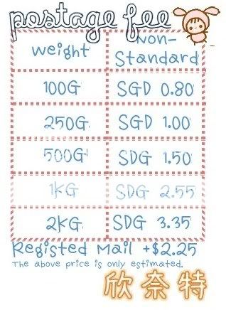 The Calculation go like these: Payment: NT$$$/20 + shipping fee (below)as according + Estimated Normal Postage Fee/ Agent fee/ Paypal Fee